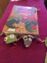 Jag har massor att berätta. Jag har ju berättat om bokmärkena jag virkar. Jag började virka för att distrahera mig från biverkningar i form av domningar och stickningar i höger hand. Därför började jag virka i våras. Här kommer en bild på några av mina bokmärken. Musen Pink Lady, flodhästen Hippo Hilda och några av deras vänner . Pink Lady har systrar som är gråa och jättesöta. Jag har några olika figurer i lager om någon vill köpa en julklapp kanske?